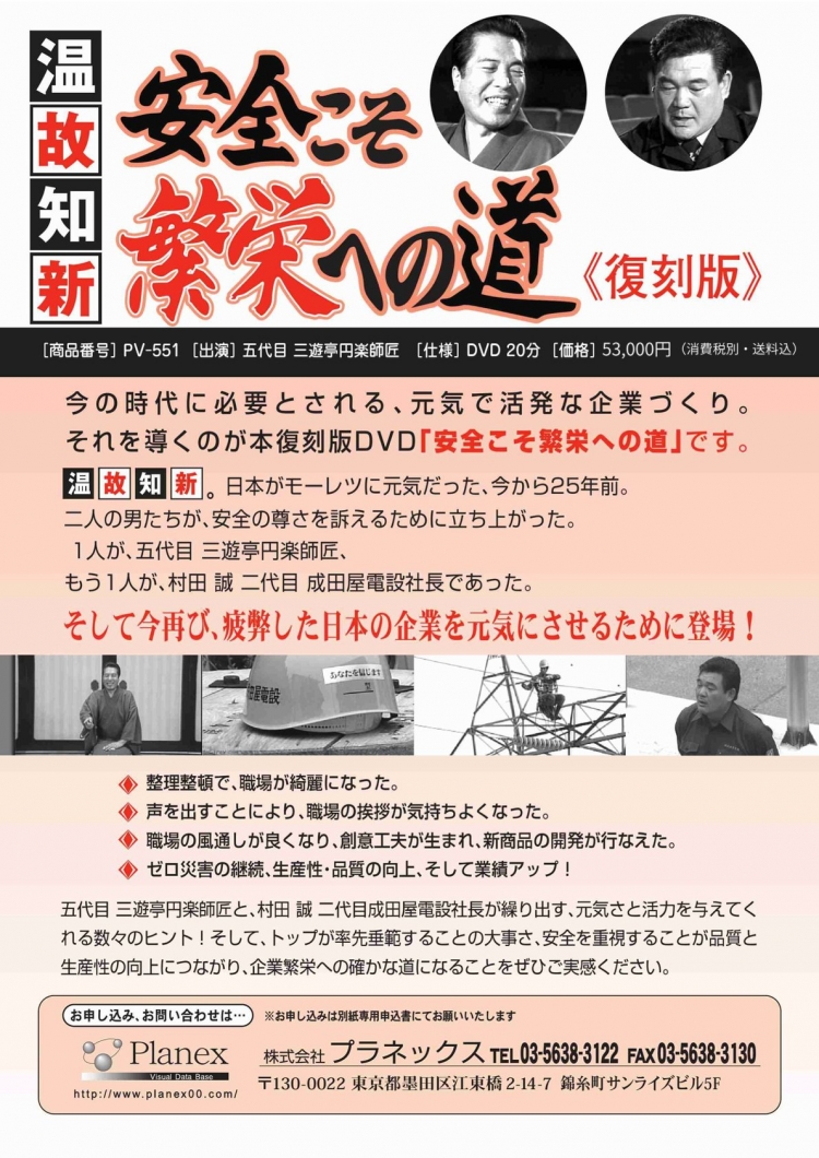 今の時代に必要とされる、元気で活発な企業づくり。それを導くのが本復刻版DVD「安全こそ繁栄への道」です。