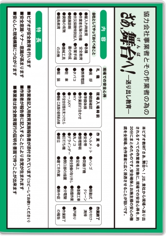 本ビデオ教材は、貴社から現場へ送り出されるすべての作業員を対象に、現場の安全心得を約20分にまとめたものです。