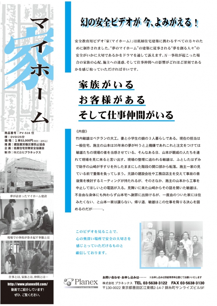 "夢のマイホーム"の建築に従事される"夢を創る人々"に、安全がいかに大切であるかをドラマを通して訴えます。