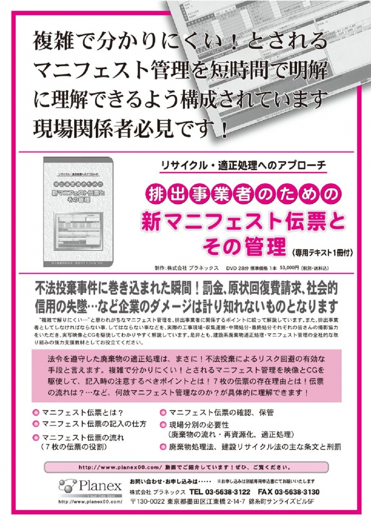 従来の「建設系廃棄物対応と事業主責任」の改訂版という位置付けで開発されていますが、加えて、廃棄物処理法の変更、建設リサイクル法の導入により、その内容が大幅リニューアルされています。