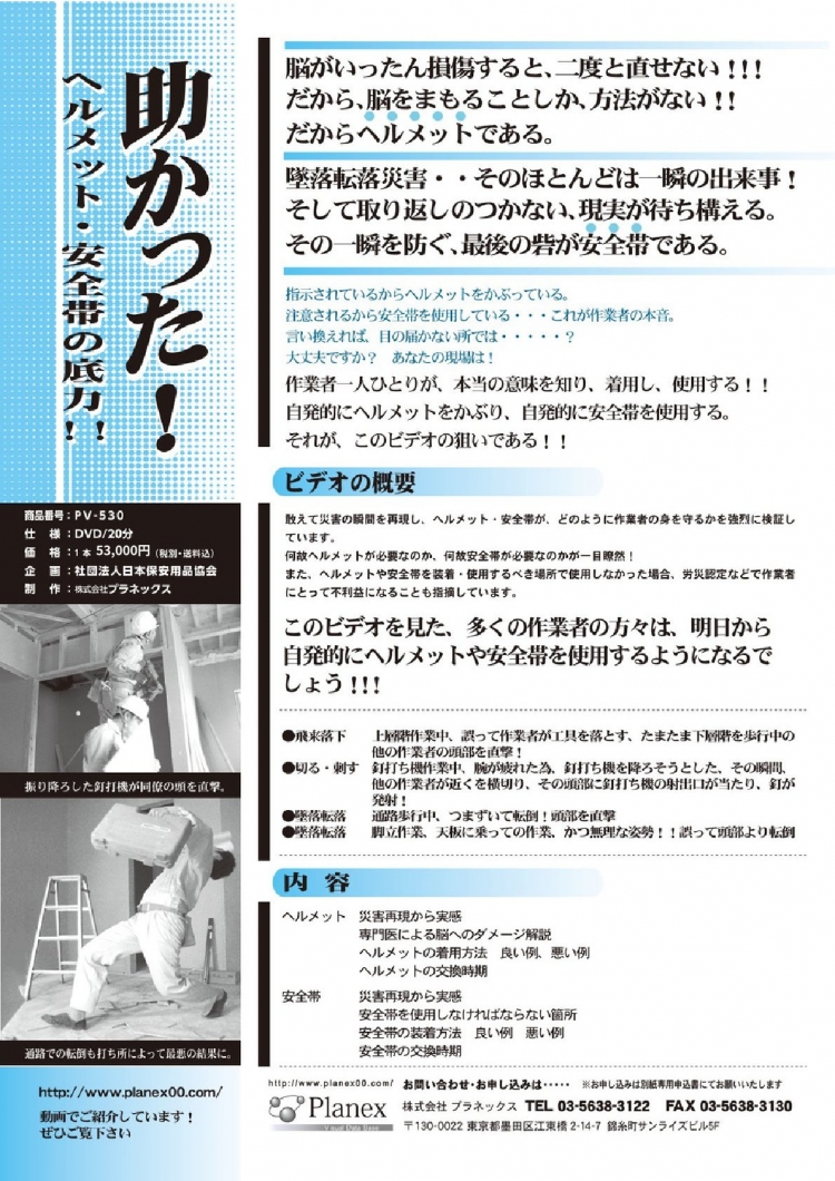 強烈な映像で、何故ヘルメットや安全帯が必要なのかが一目瞭然です。