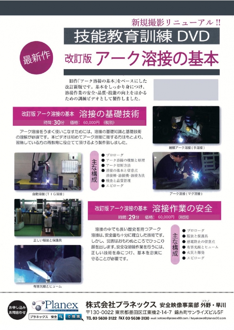 本ビデオは初めてアーク溶接に接する方はもとより、習熟している方の再教育に役立てて頂けるよう製作致しました。