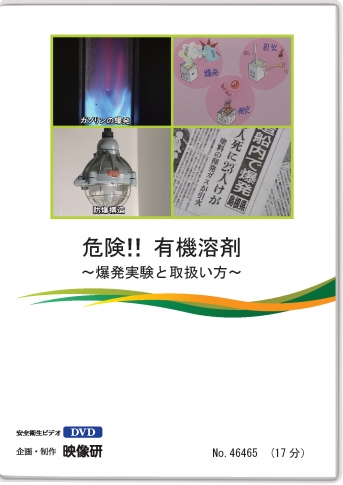 引火性有機溶剤の危険性について、実験室で「火が走る」こと、「爆発する」ことをメタノール、アセトン、ラッカーシンナーなどのテストで紹介。さらに正しい取扱い方、中毒防止策等も具体的に解説。
